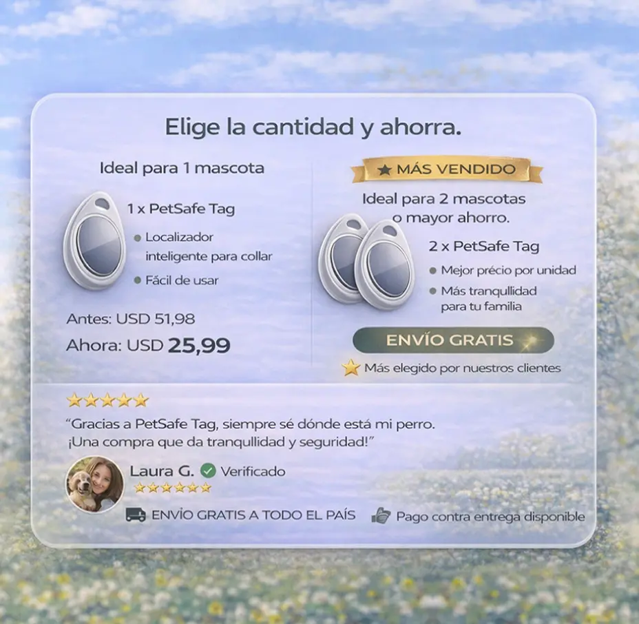 Localizador inteligente que te permite saber la ubicación de tu mascota directamente desde tu celular.